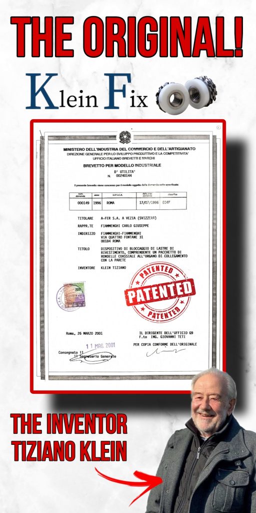 Itafix nasce dall’unione di due esperienze straordinarie: quella di chi ha inventato un sistema di fissaggio rivoluzionario per facciate ventilate e quella di chi, con oltre 20 anni di esperienza, ha lavorato con passione e dedizione nei sistemi di fissaggio per diversi settori, ampliando l’utilizzo del fissaggio Klein Fix in ambiti come l’arredamento, l’arte funeraria e molti altri.